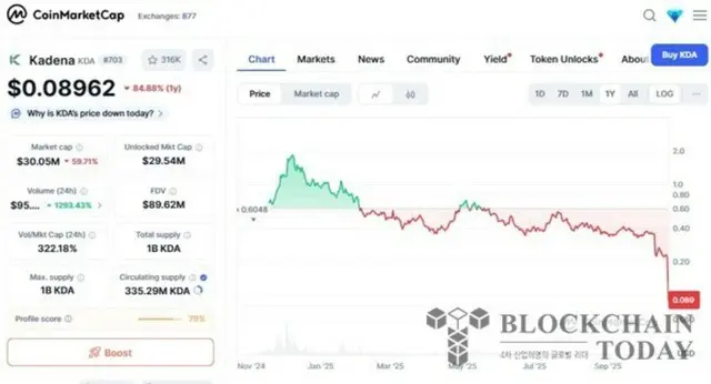 データサイトCoinGeckoによると、KDAの時価総額は2021年11月には一時40億ドル近くに達したが、現在は約3,090万ドルまで急落している。