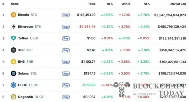 29日午前11時5分現在、コインマーケットキャップによると、ビットコインは前日同時刻比1.70%安の11万2494ドル(約1710万円)を記録した。